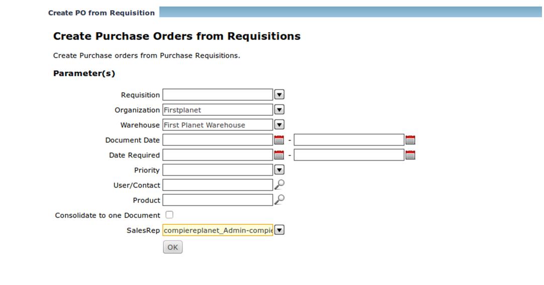 From below image, we need to select either “Requisition / Purchase Order”, and then click the “Process” button. Then the system will create the related document. Below Requisition created from above image.