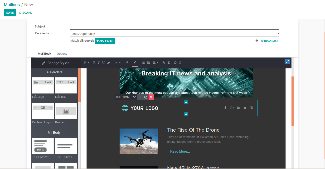 Reach out to your customers using Odoo Email Marketing