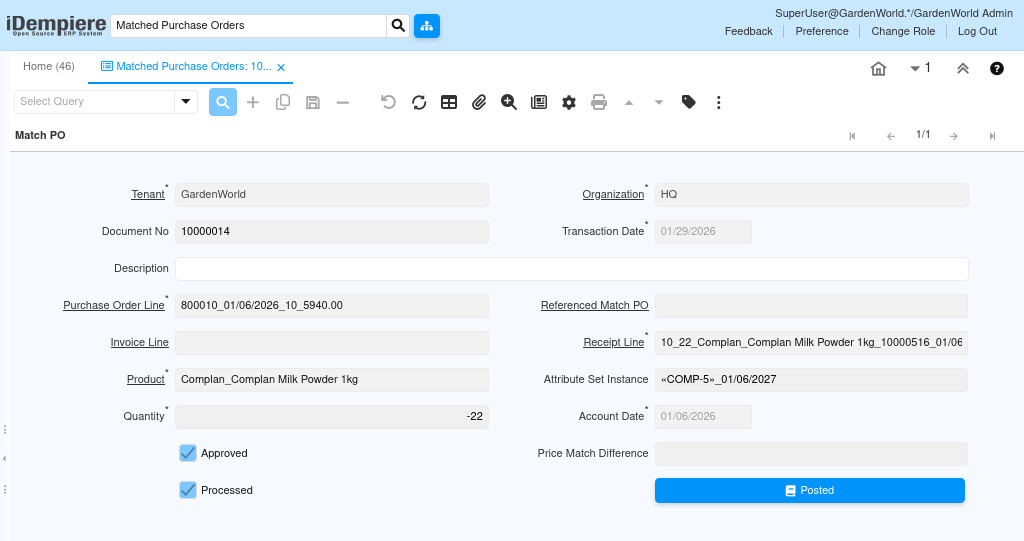 How Matched Purchase Orders Work in iDempiere
