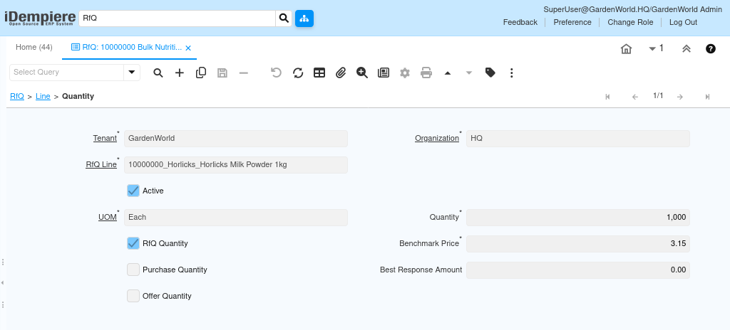 This ensures RFQs move smoothly from request to response, evaluation, and final order creation, making RFQ lines and quantity the foundation of the entire RFQ workflow in iDempiere.