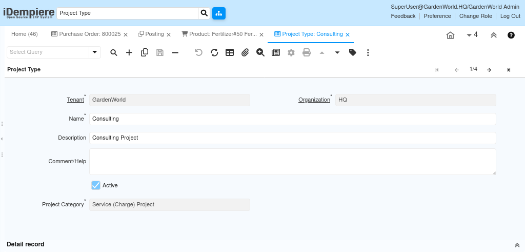 How to create project type in iDempiere
