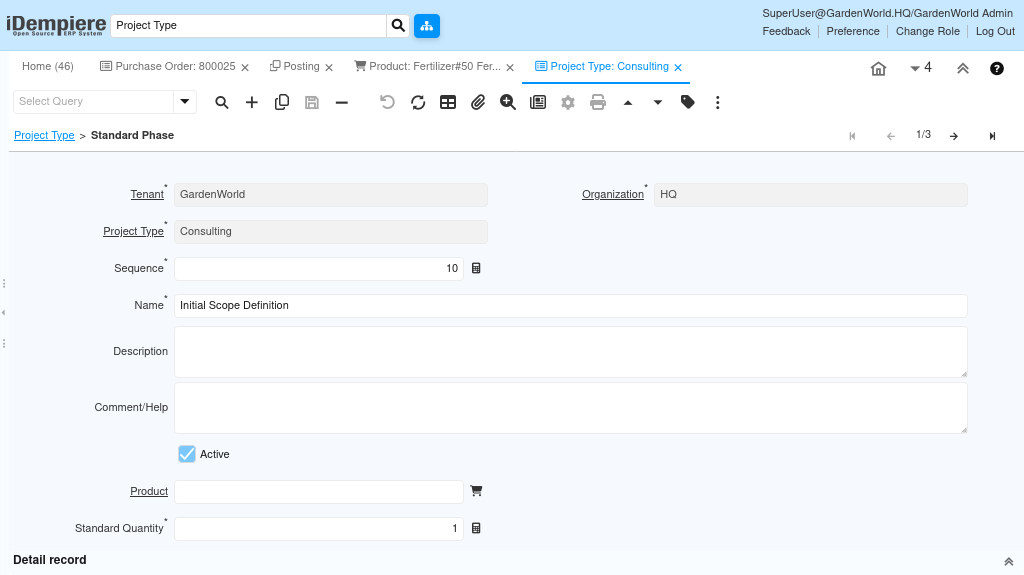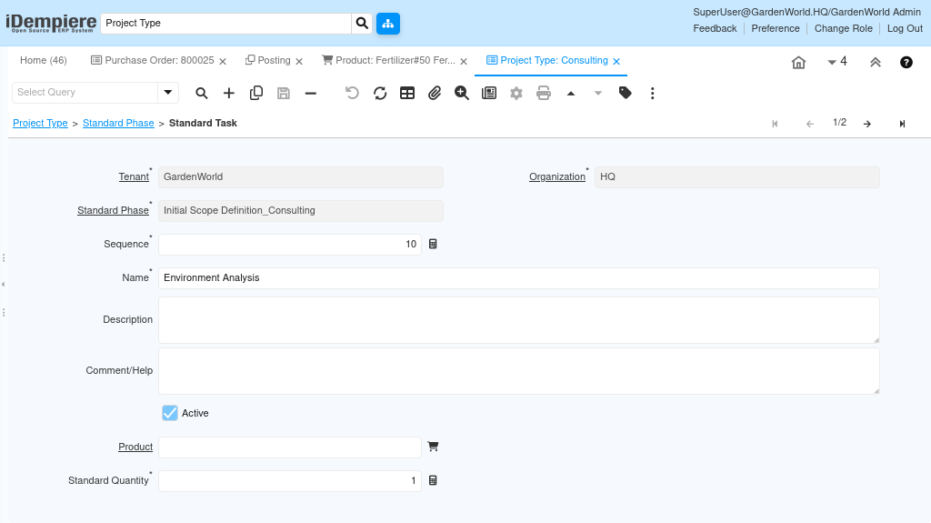 To standardize project creation and reduce manual setup, iDempiere allows users to configure