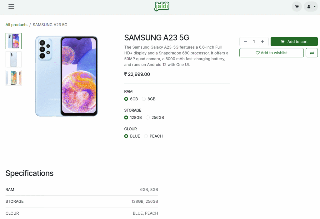 - Easy variant selection (RAM, Storage, Color, Battery Capacity, etc.) on the website.