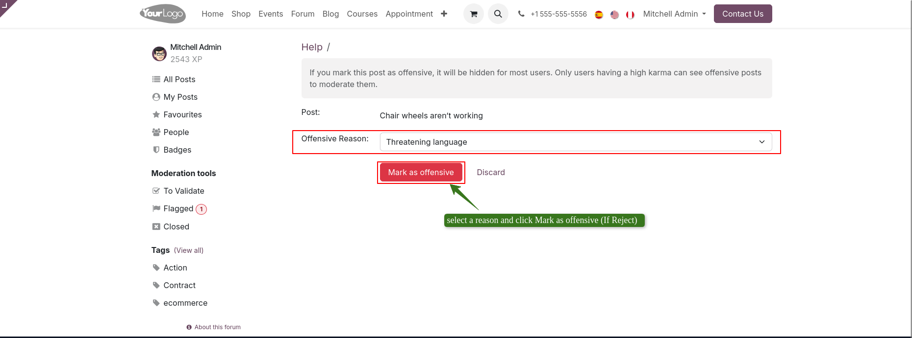 - Moderators are notified and can take appropriate action edit, delete, or ignore the flag
