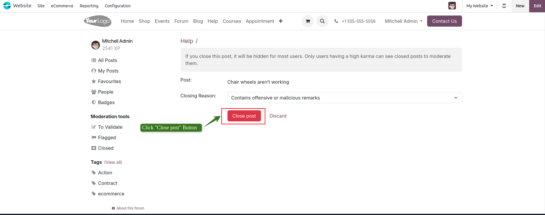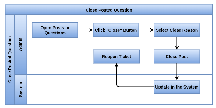 - Allows moderators to validate, close, or delete posts and handle flagged content