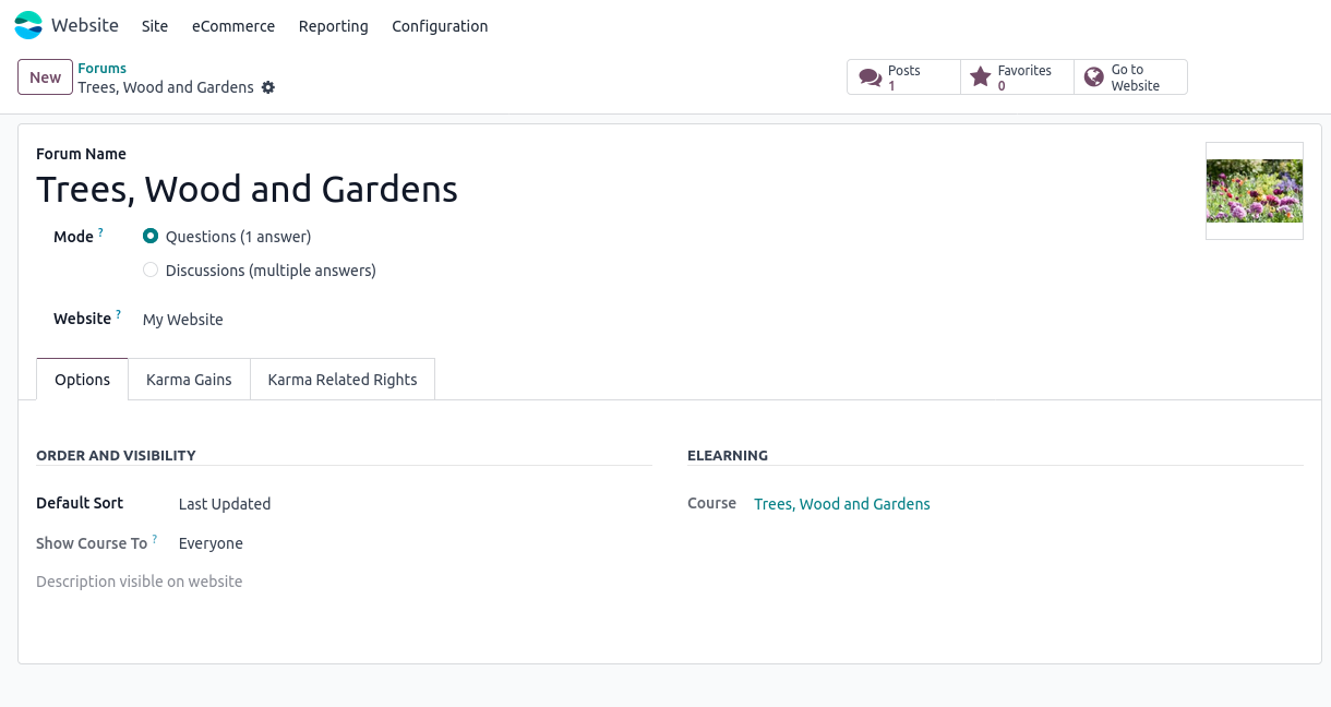 - Karma points are shared across website modules like eLearning, linking community engagement with other Odoo apps