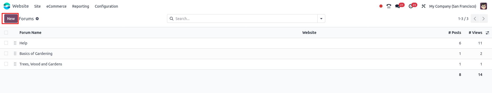 The Forum Dashboard in Odoo provides a central place to browse, manage and moderate community discussions. Users can view public posts, track their contributions, manage favorites, explore categories, and access moderation tools, all in a clean, organized layout.