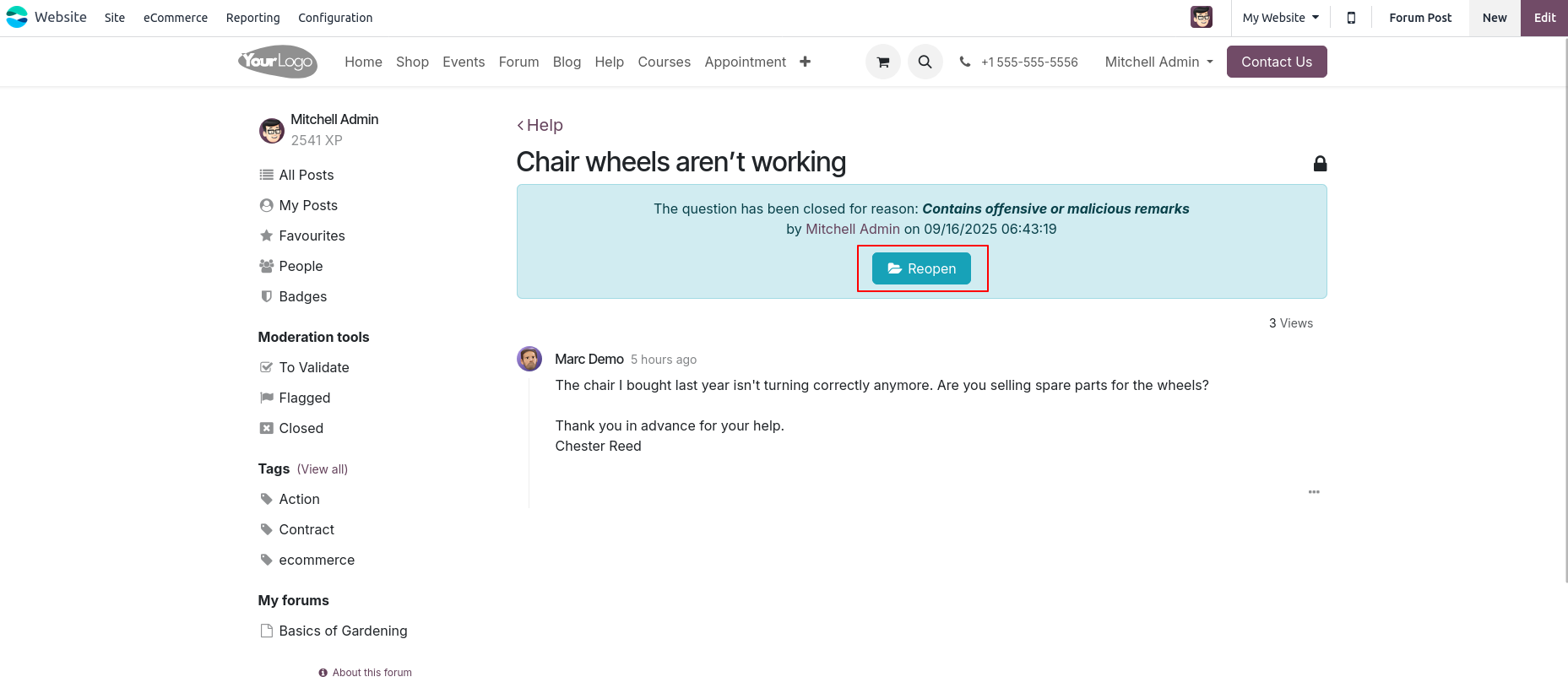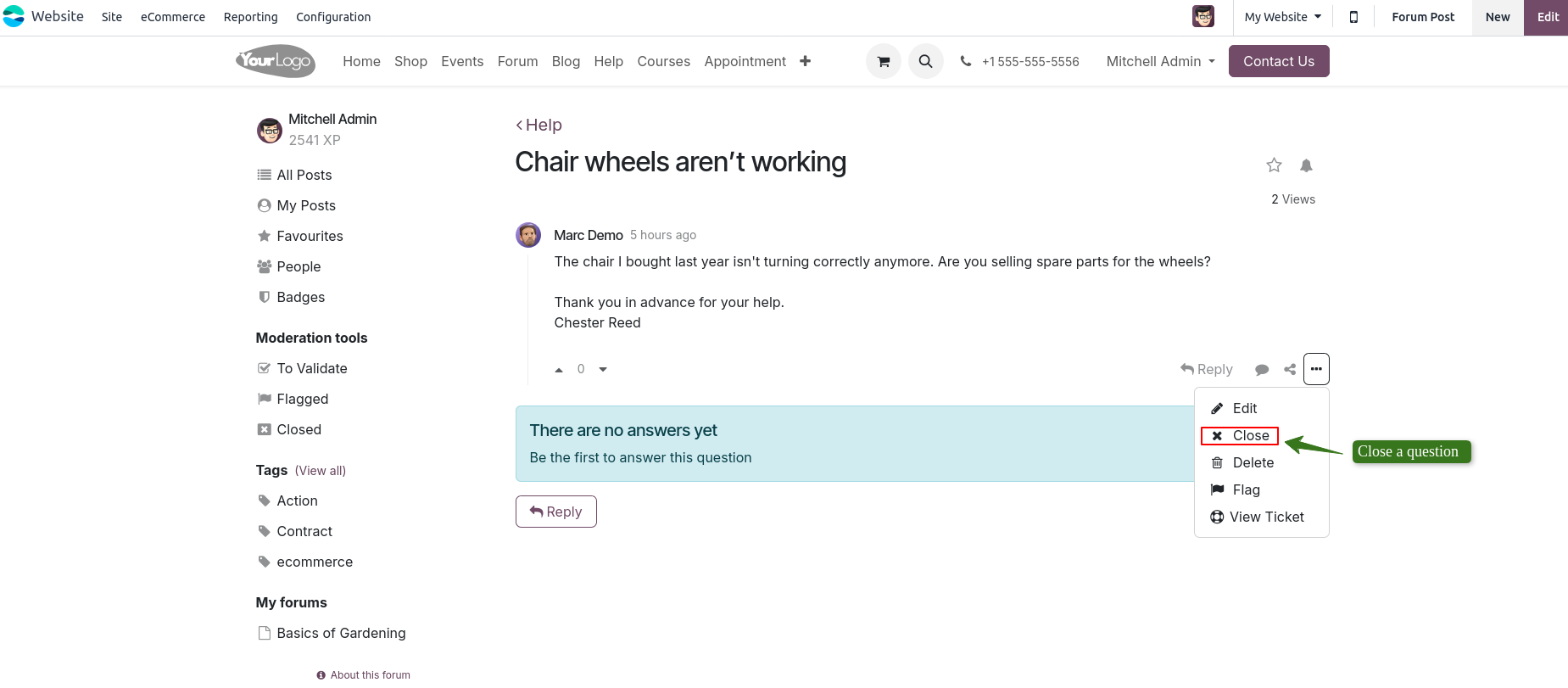 The forum is fully integrated with Odoo user management and access rights, ensuring secure and personalised participation. It also helps in building a knowledge base over time, reducing repetitive queries and improving support efficiency.