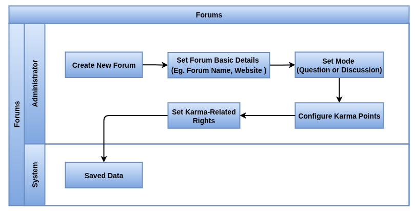 - Forum administrators can manage karma settings, user ranks, badges and permissions through the backend configuration