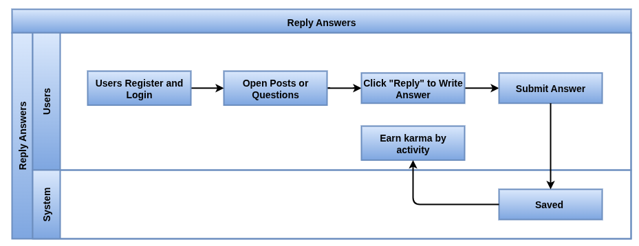 Users can respond to questions posted in the forum by submitting answers. This encourages community-driven problem solving and knowledge sharing. Answers can be upvoted, commented on or marked as the best response (in Q&A mode). The process is designed to be intuitive, promoting engagement while maintaining content quality through permissions and moderation.