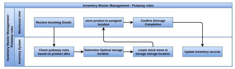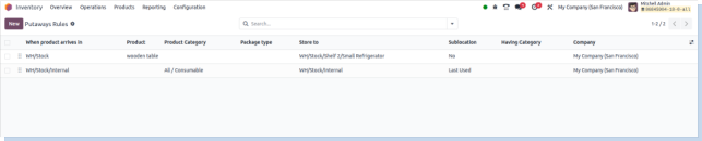 - When products arrive in the warehouse, Odoo checks putaway rules to decide the best storage location.