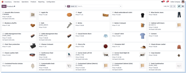 Inventory handles the complete stock lifecycle, from procurement to delivery, including internal logistics and cost adjustments. It supports multiple warehouses and integrates tightly with sales, purchase, manufacturing, and accounting for smooth operations.