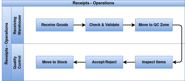 - Warehouses must be linked to delivery orders and receipts to handle incoming and outgoing stock.