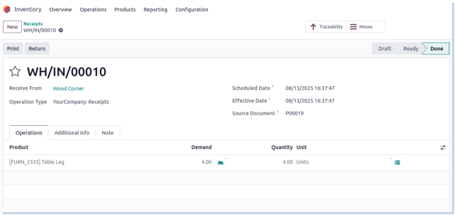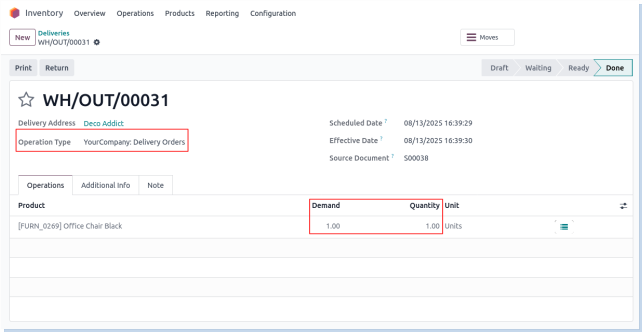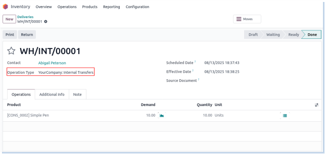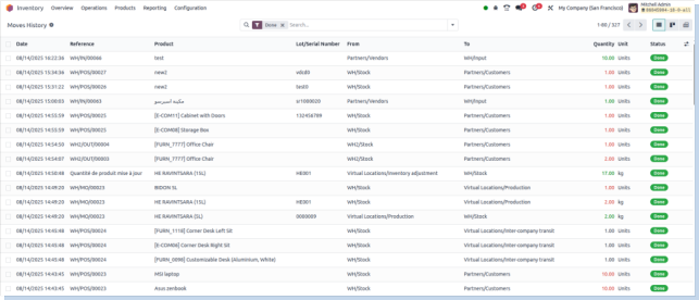 - Move status is tracked (e.g., draft, waiting, done, cancelled).