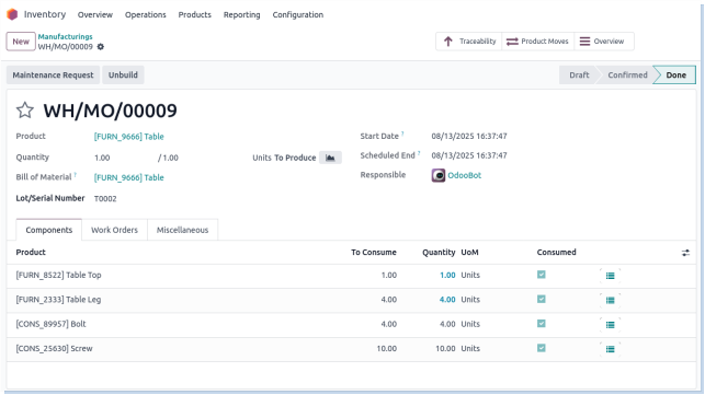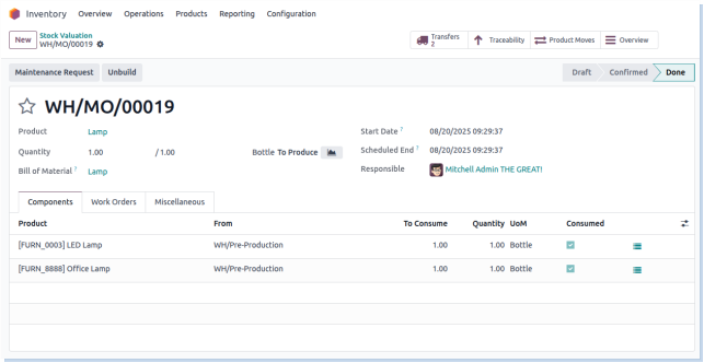 - All stock valuation entries are traceable to specific Manufacturing Orders (MOs) and Work Orders (WOs), supporting full audit trails.