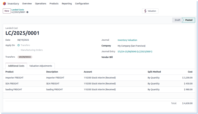 - All supporting documents (e.g., invoices, freight bills) must be attached to the landed cost record.