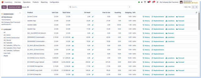 - Tracks actual product quantities: on-hand, incoming, outgoing, and forecasted.