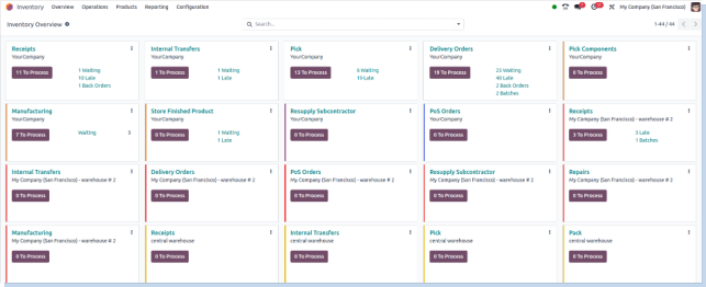 The Inventory Dashboard in Odoo delivers a comprehensive, real-time snapshot of your entire inventory operations. It consolidates data from multiple warehouses, product categories, and stock locations, providing visibility into stock levels, movements, and valuation. The dashboard supports proactive inventory management through automated alerts for low stock, reorder points, and aging products. Advanced reporting and graphical insights help optimize procurement, sales, and manufacturing decisions.