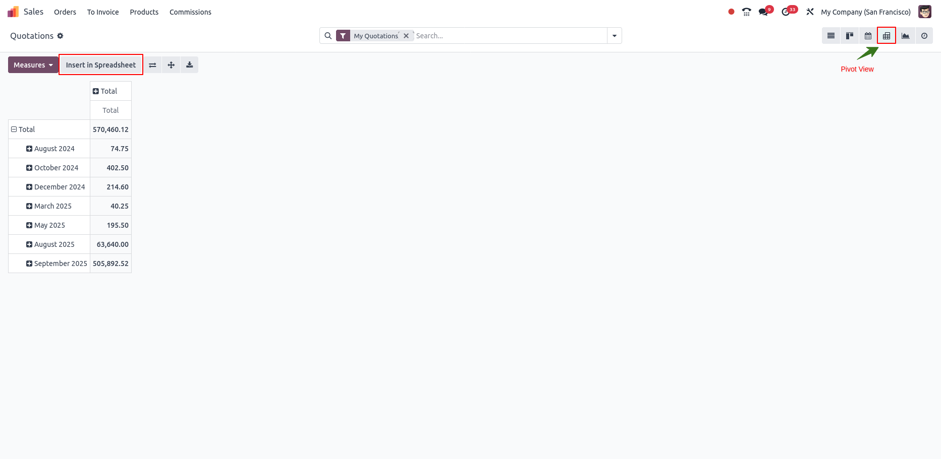 Select Spreadsheet Pivot View