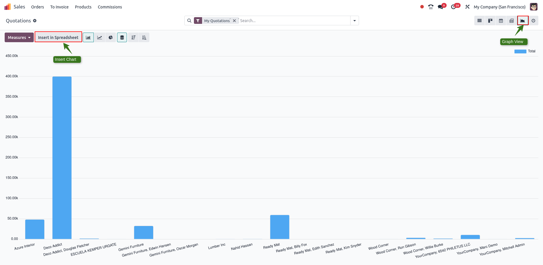 A detailed work analysis is important for any company. A successful business needs proper analysis to run smoothly. This allows you to view all of a company’s operational data clearly on one page. Reports play a key role in every business. Reporting needs can vary depending on the company and sometimes extra steps like filtering are required to manage the reports. With Odoo reports, these tasks are simple and fast to complete. Odoo also includes a Spreadsheet module to help with documentation.