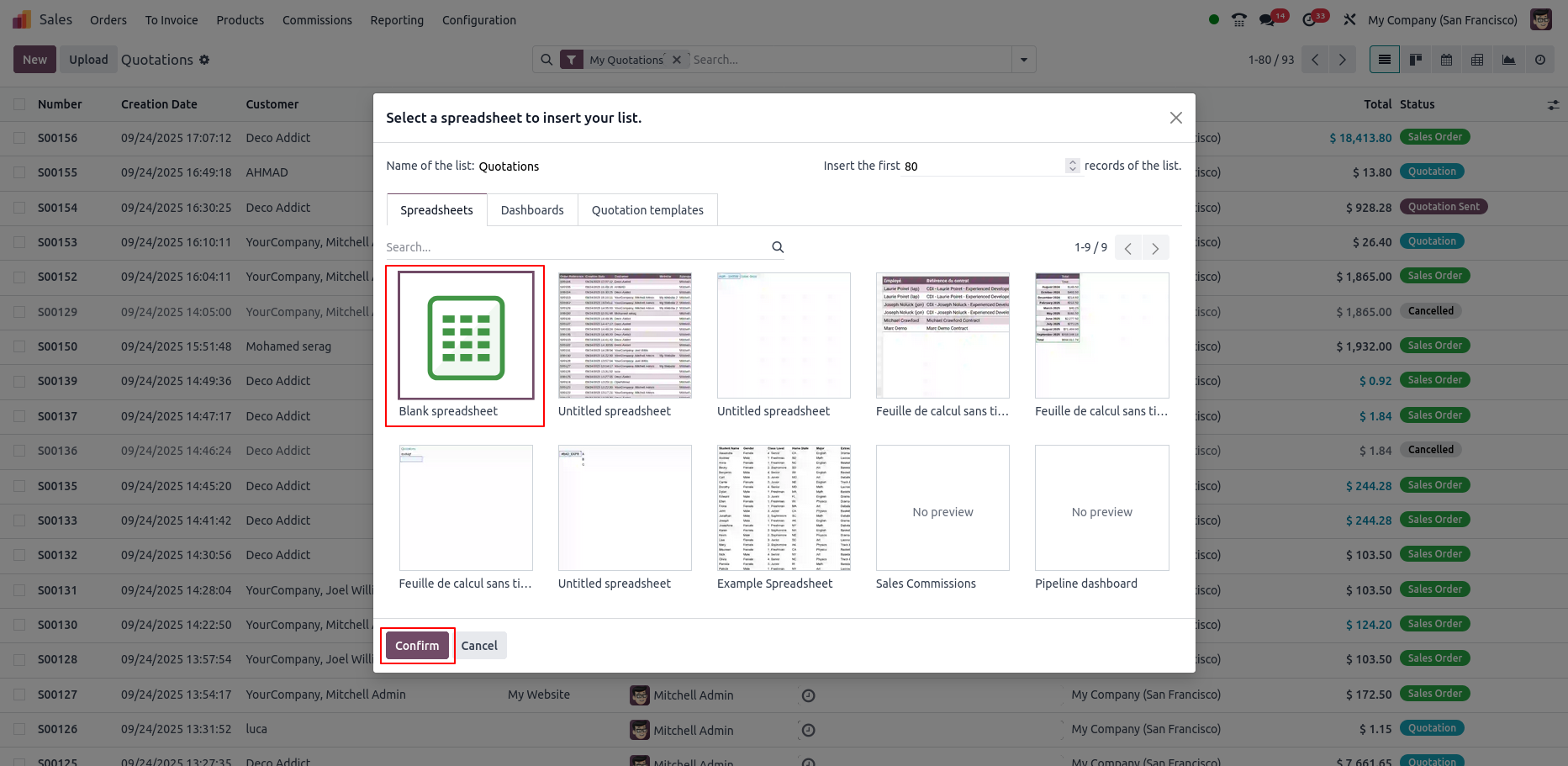 In Odoo, Spreadsheet Templates are ready-made sheets designed for common business needs like sales reports, financial statements, inventory tracking or forecasts.