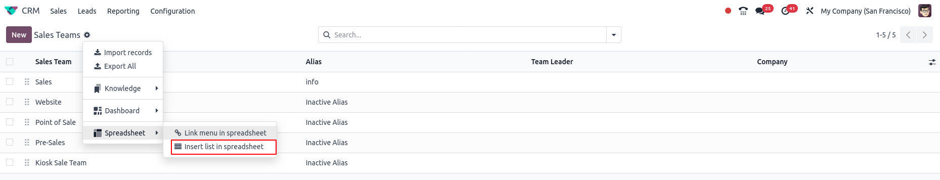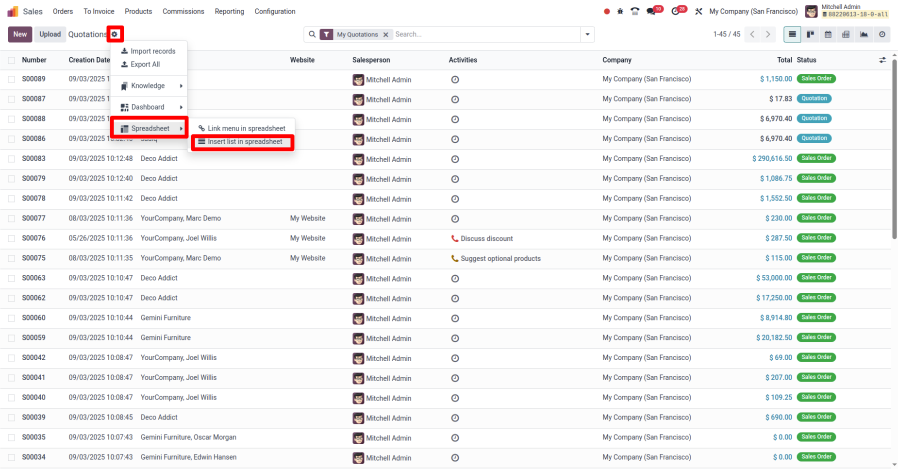 In Odoo, the Insert a List feature allows users to seamlessly transfer data from the Odoo database into a spreadsheet for further analysis or reporting. This is especially useful for managing and manipulating large sets of data, such as product categories, sales records or customer lists.