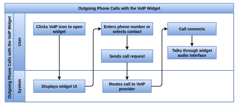 - The call ends when the salesperson clicks the red phone icon in the VoIP widget