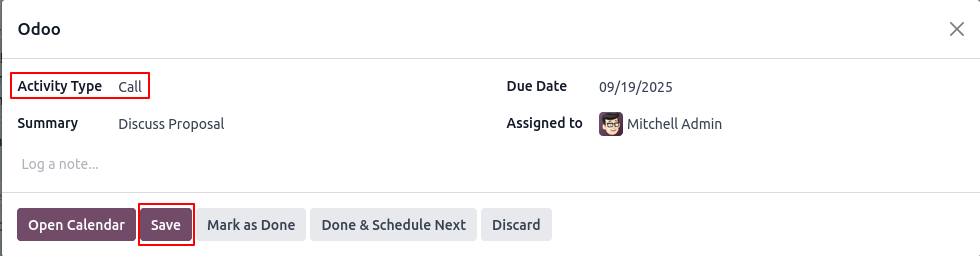 - The salesperson should mark the call activity as done in the Planned Activities section after the call