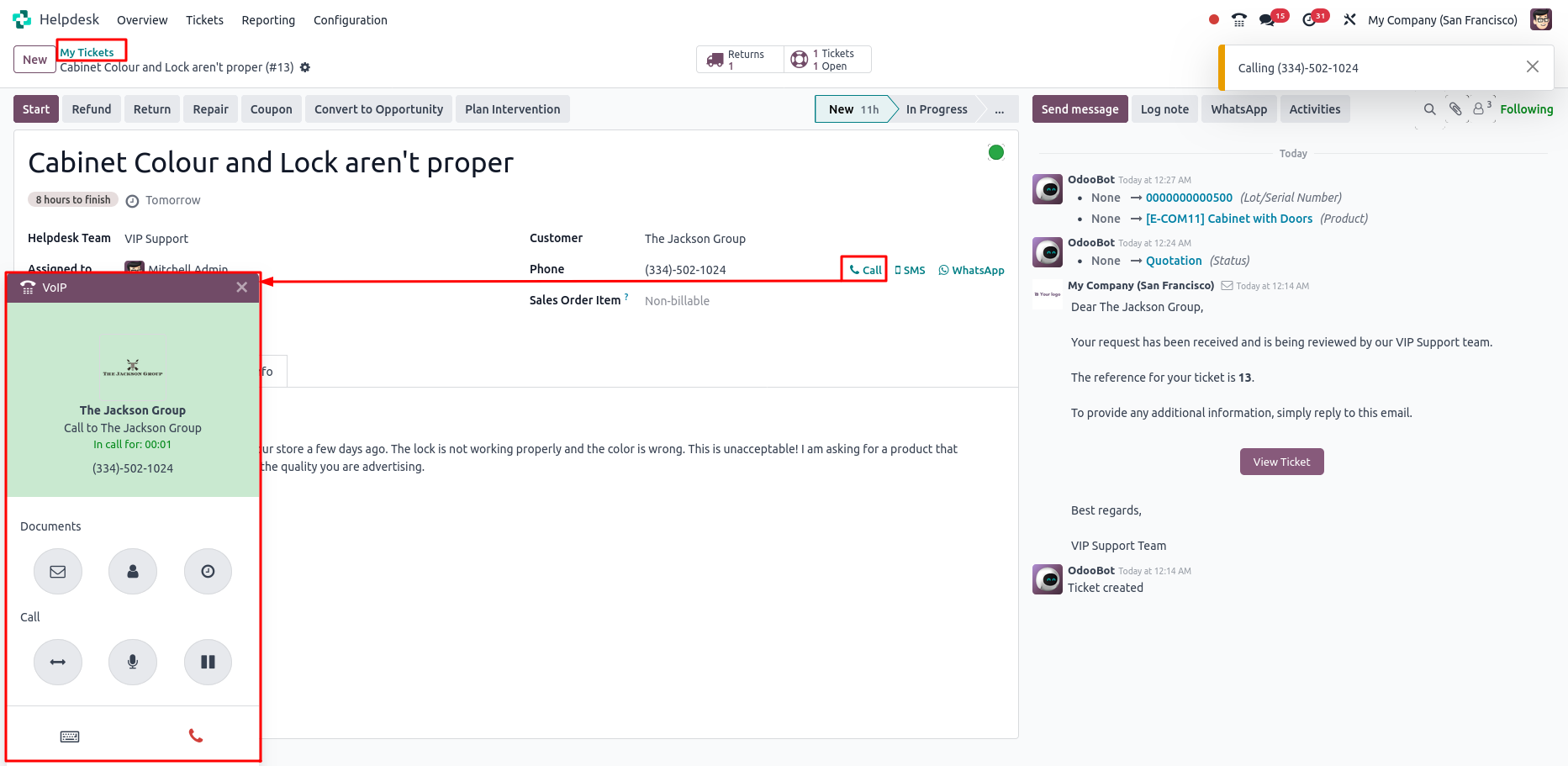 - VoIP integrates with Odoo’s Helpdesk module for better handling of customer service calls