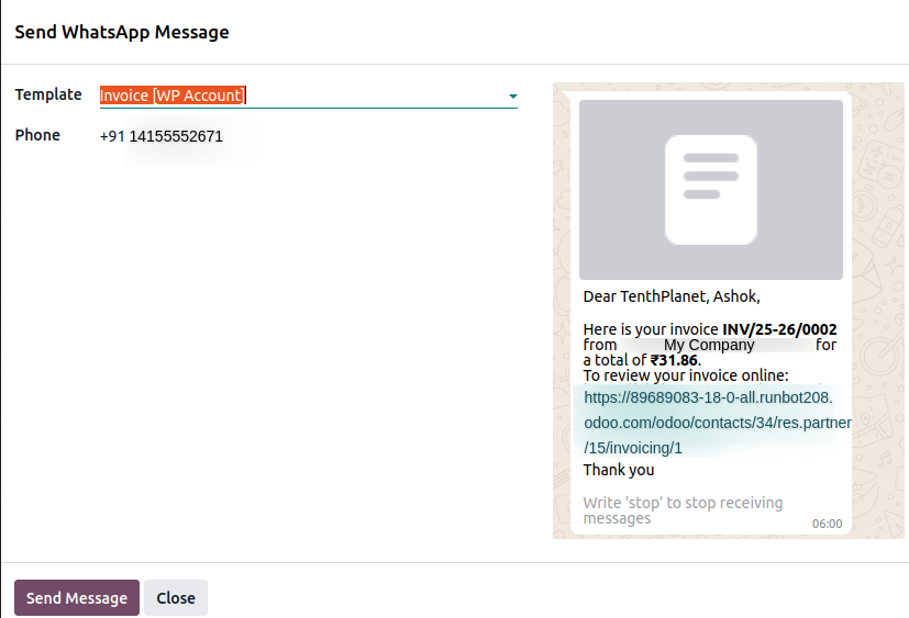 - Access full WhatsApp functionality via Odoo’s mobile app for real-time communication on the go