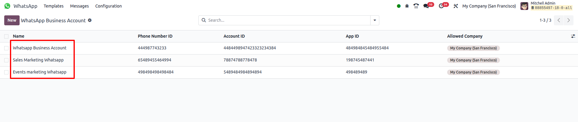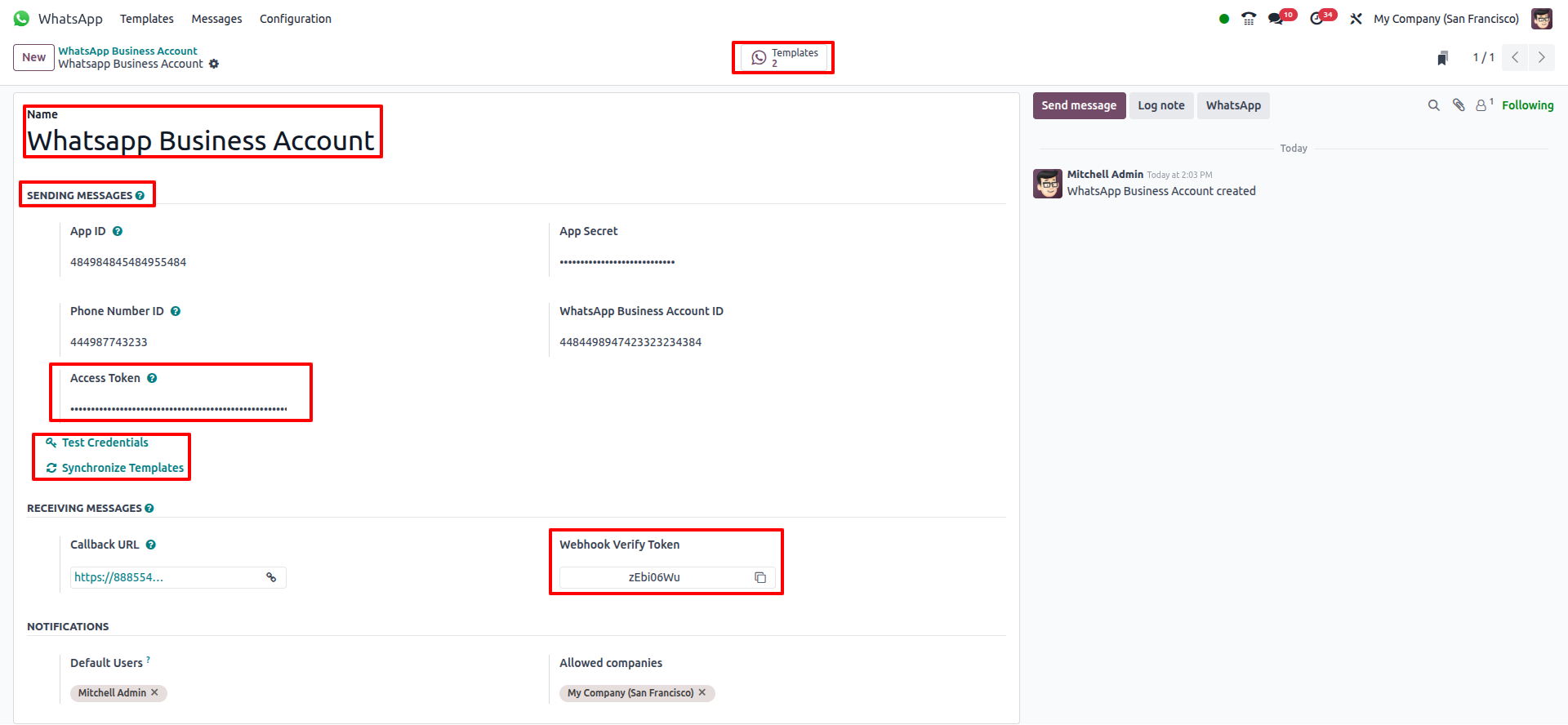 - A valid WhatsApp Business Account Name must be defined to identify the connection within Odoo