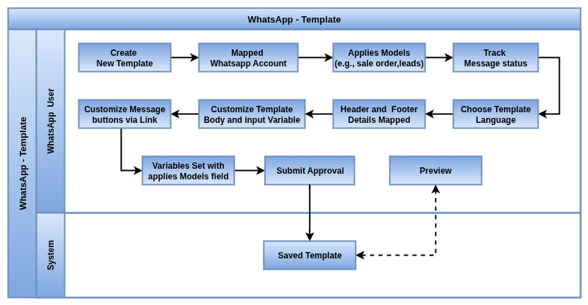 - Templates must be pre-approved by Whats App before sending; unapproved templates cannot be used